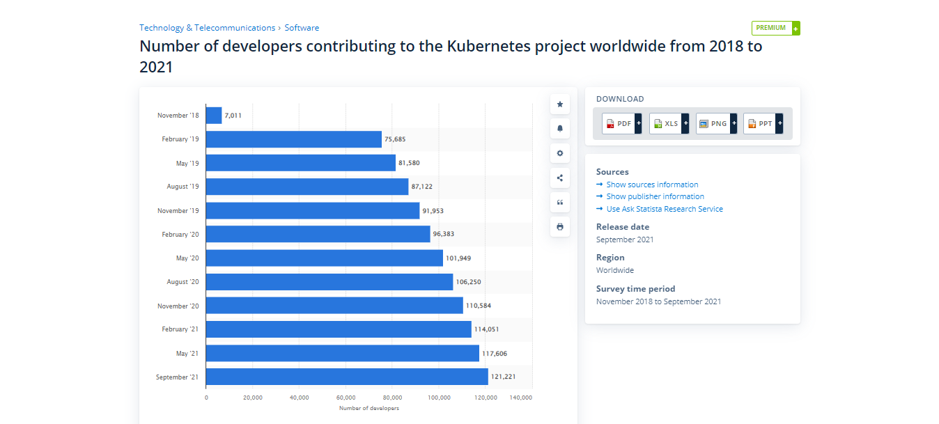 As per the Statista survey report, the number of developers utilizing Kubernetes globally since 2018 has nearly doubled. The rise in the figures is attributed to its innovative and modernized features and simple application.